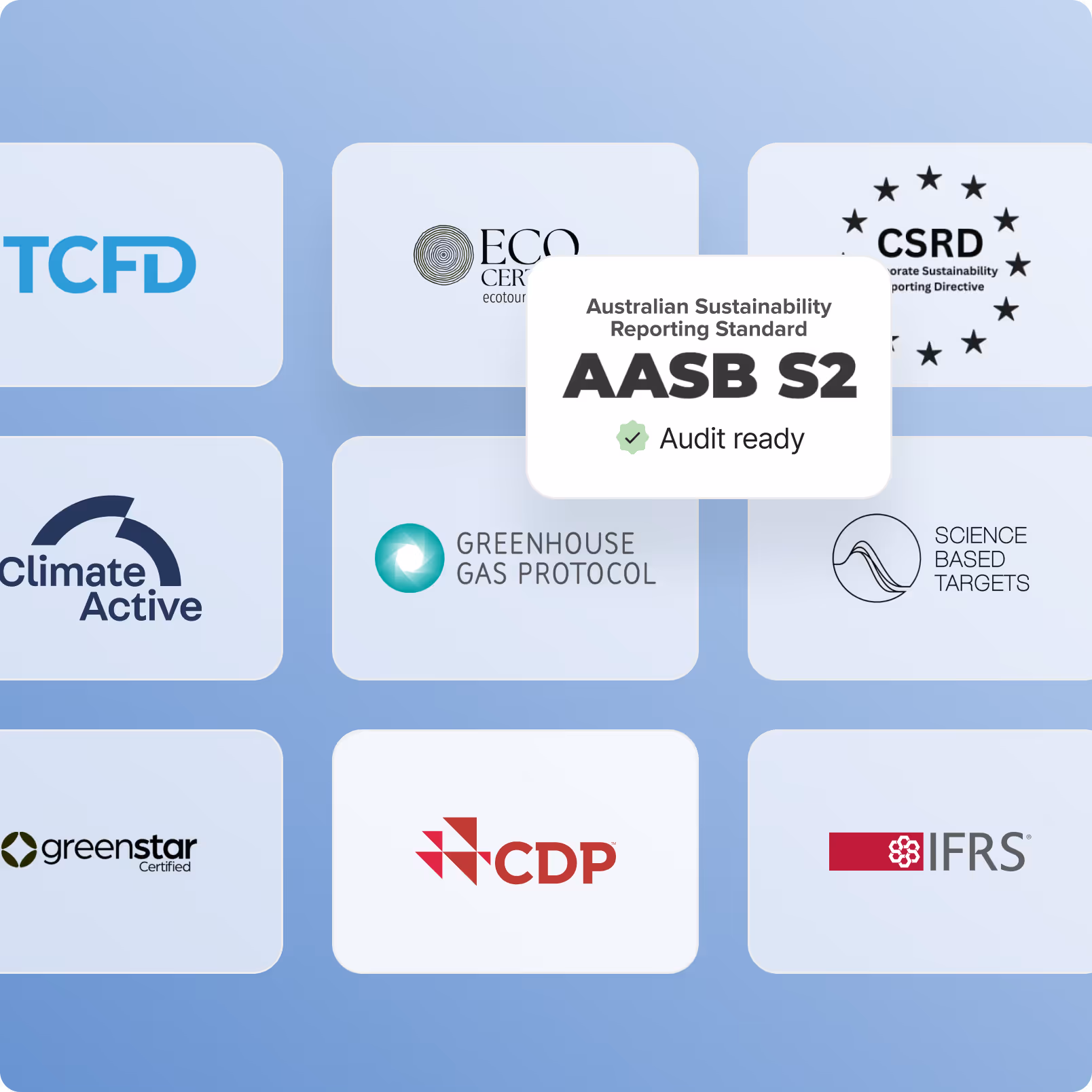 Up-to-date and aligned with ASRS and global sustainability standards, such as the GHG Protocol and CSRD.