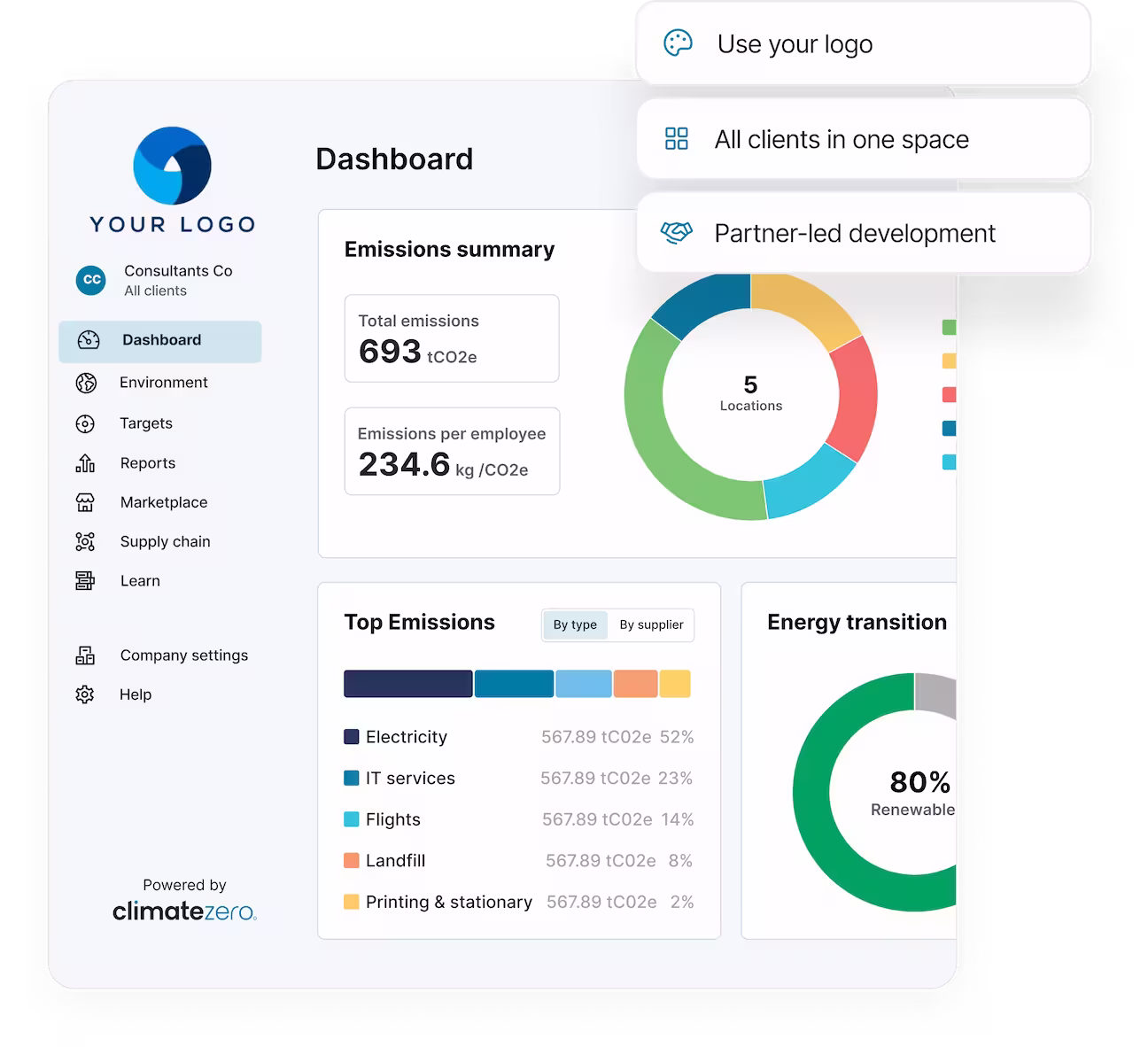 Add value to your consulting or accounting clients or industry group members via a Climate Zero partnership. Extend your services with co-branded client-facing software to use as your own.