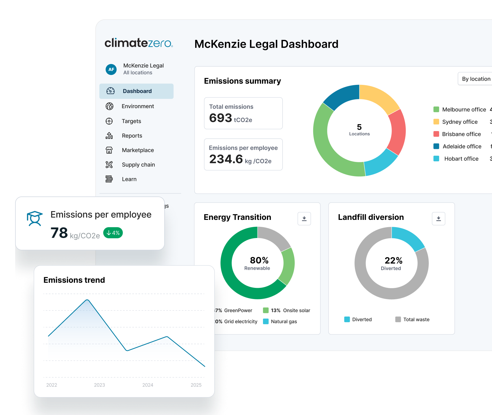 Your firm's reputation depends on leading by example. Climate Zero makes emissions measurement, reporting and target setting straightforward for professional services businesses, helping you track emissions across travel, offices, and operations while maintaining client focus.