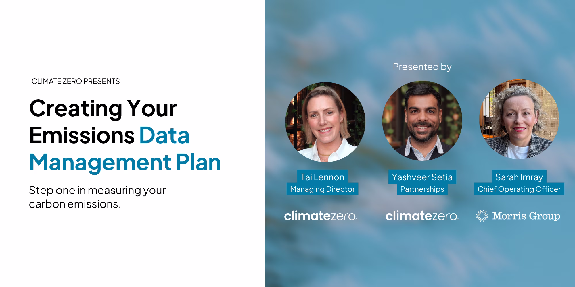 In this webinar hosted by Climate Zero with special guest Sarah Imray, COO of Morris Group, you’ll learn where to find the information you need, what to focus on first and practical tips and tricks to make data management far more manageable.