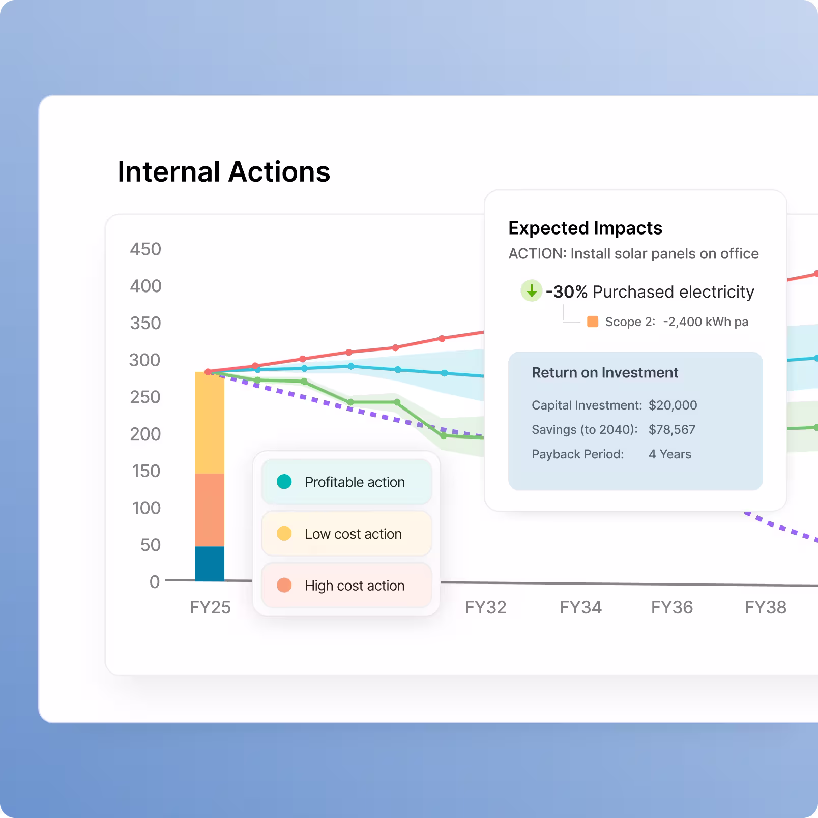 Clearly show the cost, payback period, and ROI of each initiative to find your most efficient pathways with stronger evidence.