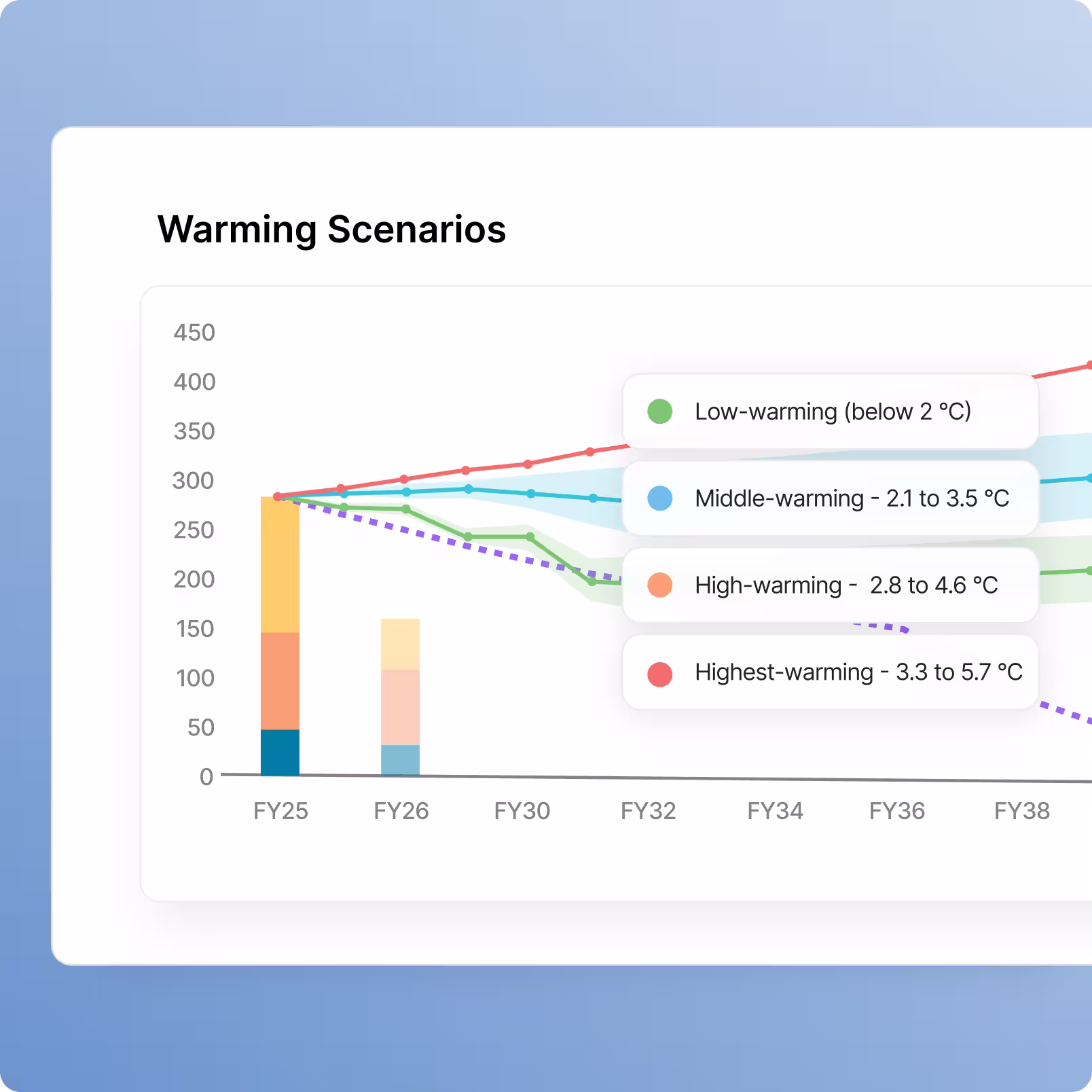 See whether your current sustainability initiatives are enough to meet ambition or targets, and where shortfalls exist within different scenarios.